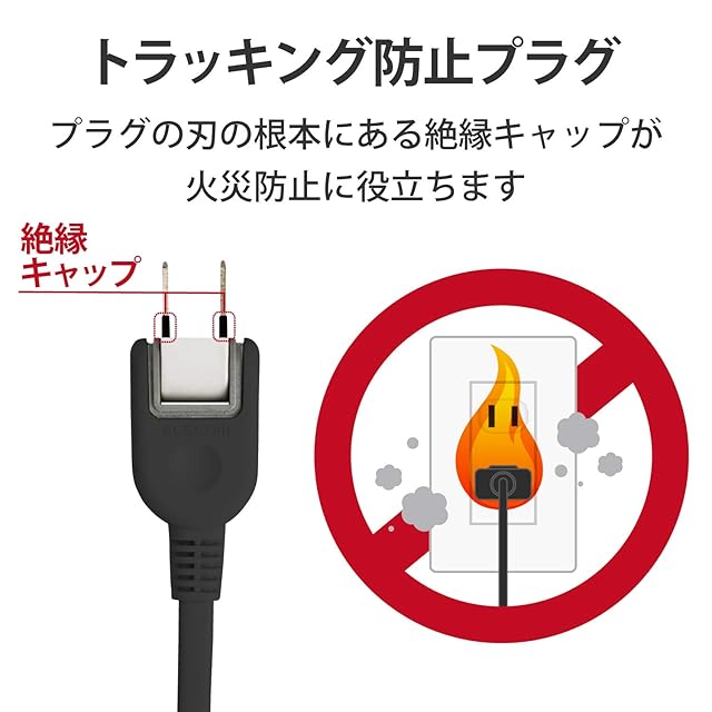トラッキング現象による火災の防止に役立つ、絶縁キャップ付きのコンセントプラグを採用しています。