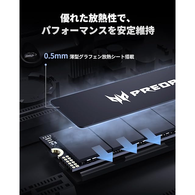 商品名:Acer Predator M.2 SSD 2TB GM6 NVMe2.0 2280 PCIe Gen4×4 超高速(最大読み取り:7200MB/s、最大書き込み:6200MB/s) 内蔵SSD 高耐久 3D NAND PS5動作確認済み メーカー5年