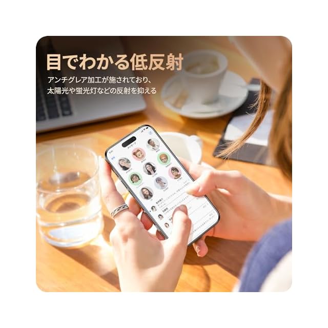 【アンチグレア・反射防止】NIMASO独自の反射防止コーティングの加工で、スマホスクリーンの表面の太陽光や蛍光灯などの反射を抑え、目の負担を軽減でき、長時間でスマホの画面を見ていたり、ビデオを視聴しても、眼が疲れにくいです。
