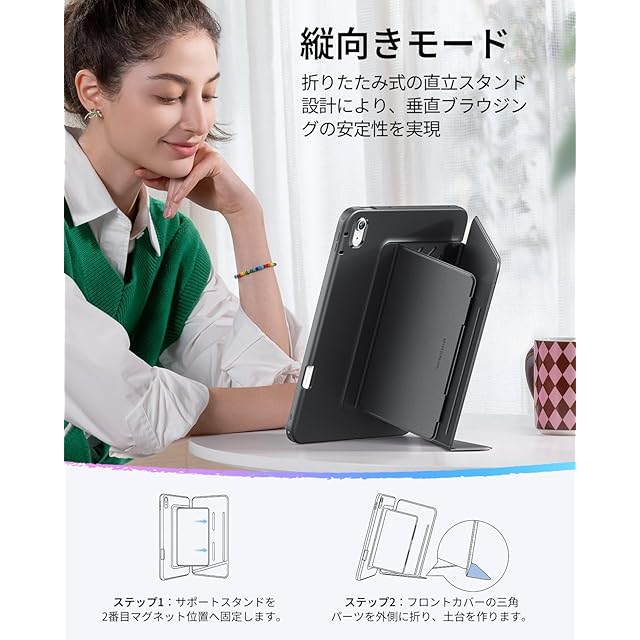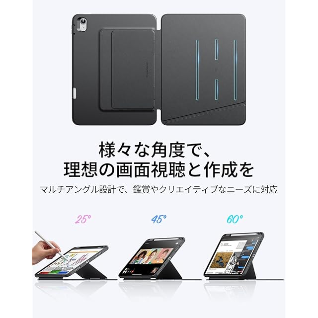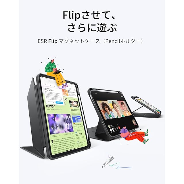 ESR iPad A16 ケース 第11世代 / 第10世代 専用カバー (2022/2025モデル) ペン収納 耐衝撃 縦横スタンド 自動ウェイク/スリープ Pencil 第1世代/USB-C 対応 マルチアングルケース 11インチ/10.9インチ Flipシリーズ ブラック | TREND DESIGN 家電専門店