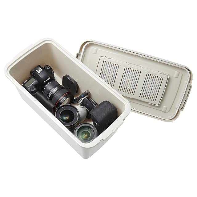 カメラやレンズなどの精密機器やキャンプ用品など、湿気に弱いものの収納に便利。