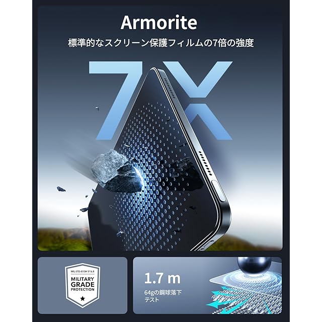 【付属品】:Armoriteスクリーン保護フィルム(2枚)、クリーニングキット×2、自動ホコリ除去UltraFitトレイ、取扱説明書
