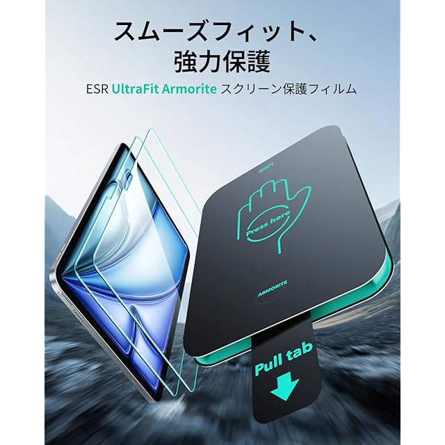 商品名:ESR 2枚入り iPad Air 11インチ フィルム M3/M2 (2025/2024 第7/6世代)専用 Armorite スクリーン保護 9H硬度 強化ガラスUltraFitトレイ付き 軍事規格の保護力 気泡ゼロ HD透明 自動除塵 耐スクラッチ性 Apple Pencil対応