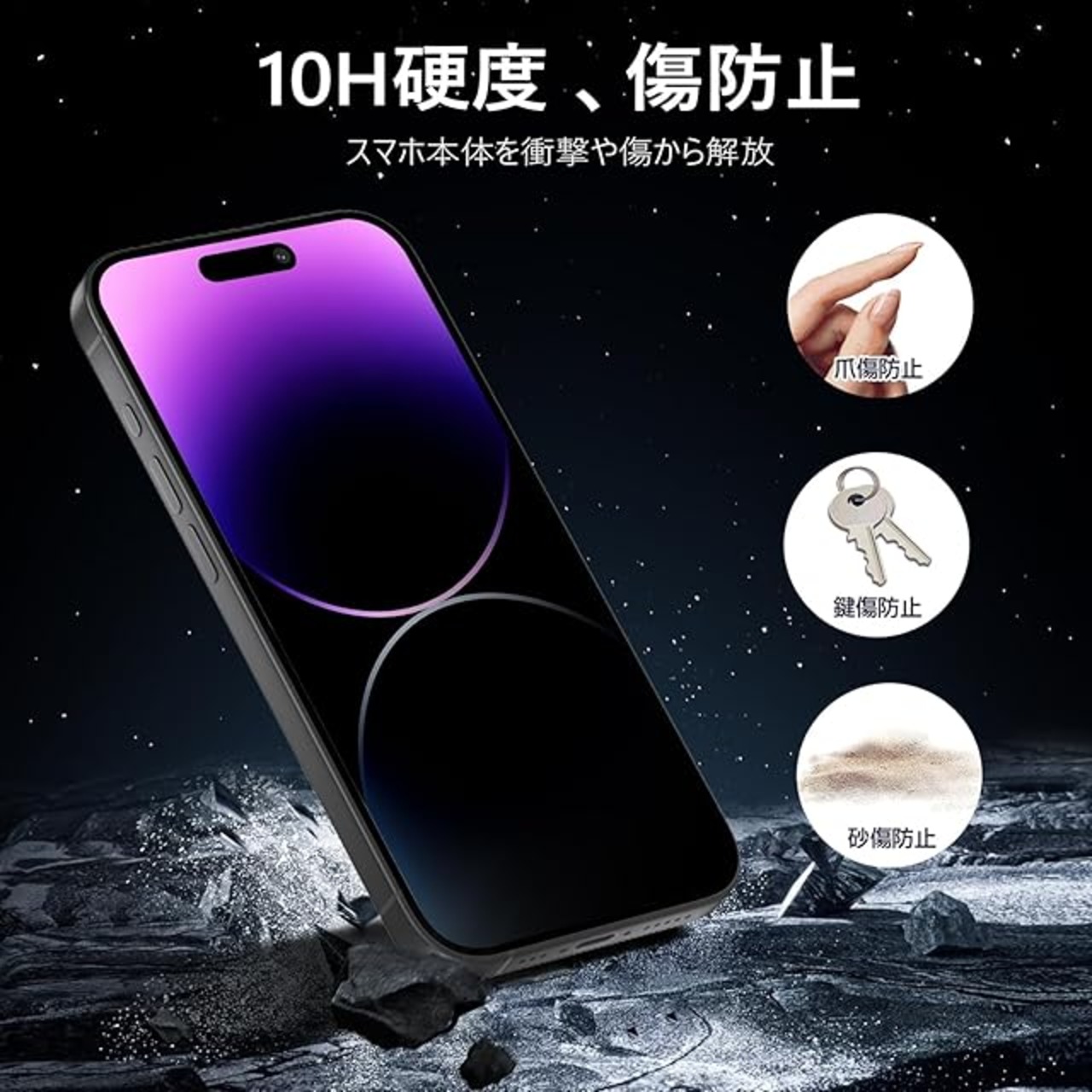 【10H硬度・高品質素材】 MINIKAのいPhone 14 Pro max フィルム。10H硬度ガラスを採用し、ハードコーティング技術により外部からの衝撃を吸収し、画面へのダメージを可能な限り抑えます、スクラッチ防止。【製品の特徴】 全面保護/気泡なし/耐衝撃/剥がれない/綺麗/割れない。