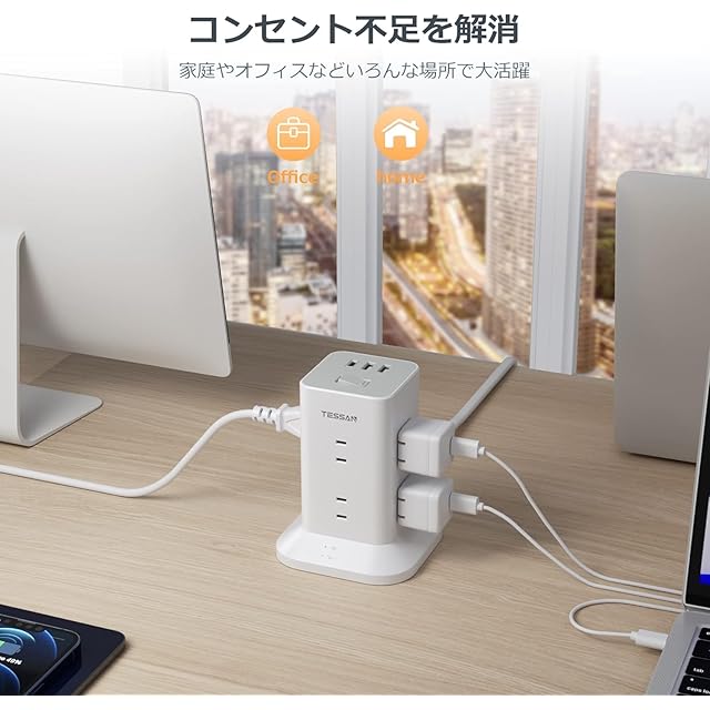 タワー型 延長コード 5m 電源タップ usb コンセント たこあしコンセント テーブルタップ TESSAN 8個AC口 1個タイプCポート 2個USB-Aポート 電源コード OAタップ type-c タコ足配線 マルチ スイッチ付き 180°回転プラグ 壁掛け 卓上 | TREND DESIGN 家電専門店