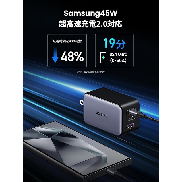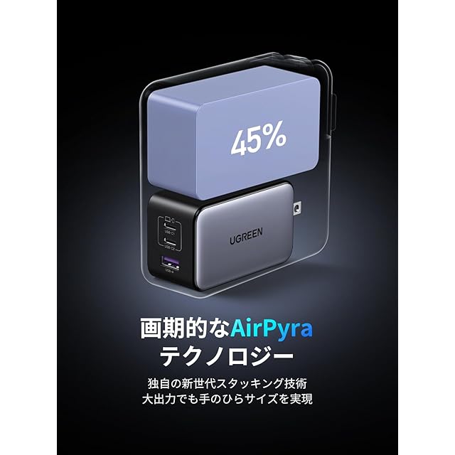 商品名:UGREEN NexodeX 100W充電器 USBC*2+USB A3ポート タイプC 急速充電器 新生代GaNInfinity™チップ 独自Airpyra技術 ノートパソコン PSE技術基準適合 安全保護機能 PD3.0 PPS規格 折り畳み式 MacBook/iPad/iPhone 16/15/14/Android/Galaxy S24その他USB-C機器対応