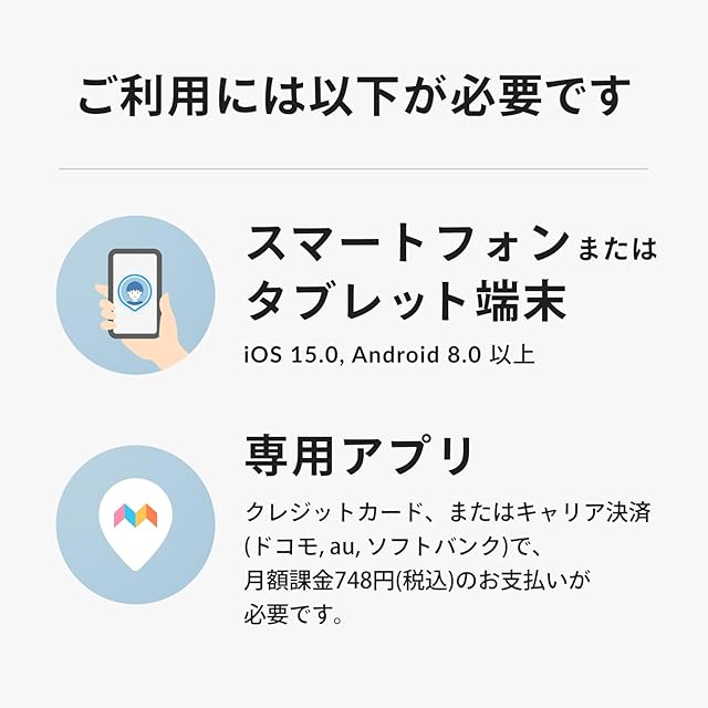 【端末代金も月額通信料金もリーズナブル】 みてねみまもりGPSは、子ども向けGPSとしては高品質ながら、端末価格・通信費ともに業界最安級の水準でご提供しています。ご利用にはスマートフォンまたはタブレット端末と、専用アプリ(iOS 15.0以上 / Android 8.0以上対応)が必要です。ご利用前にアプリ内で月額通信料金のお支払い設定を行っていただきます。充電用USB Type-Cケーブル(ACアダプター別売)と専用ストラップも付属しているため、届いてすぐにご利用いただけます。こちらの商品はお子さまを持つご家庭向けに多くのサービスを提供してきた上場企業・ミクシィが運営しています。サポート体制も万全ですので、初めての方でも安心してお使いいただけます。