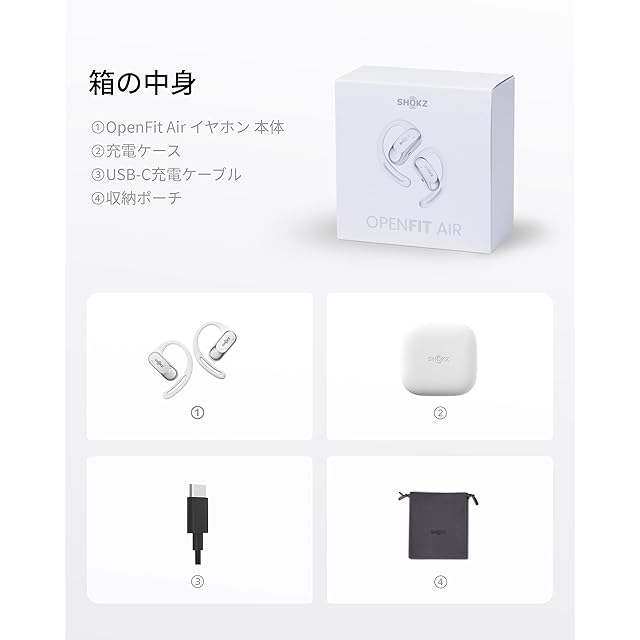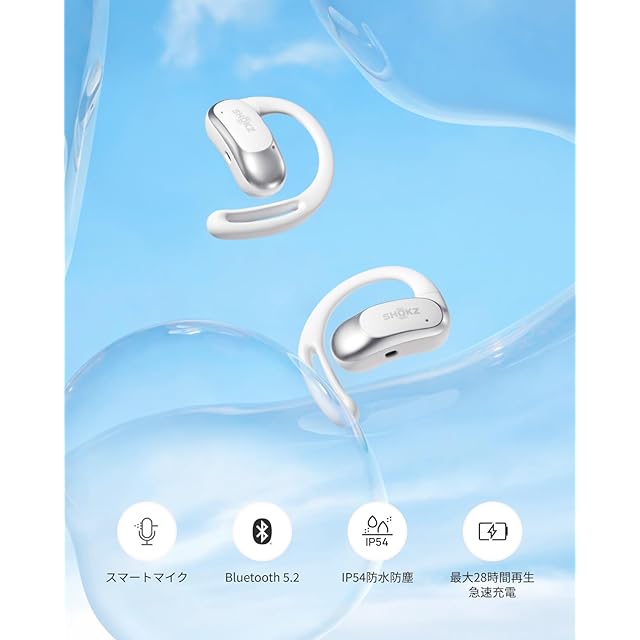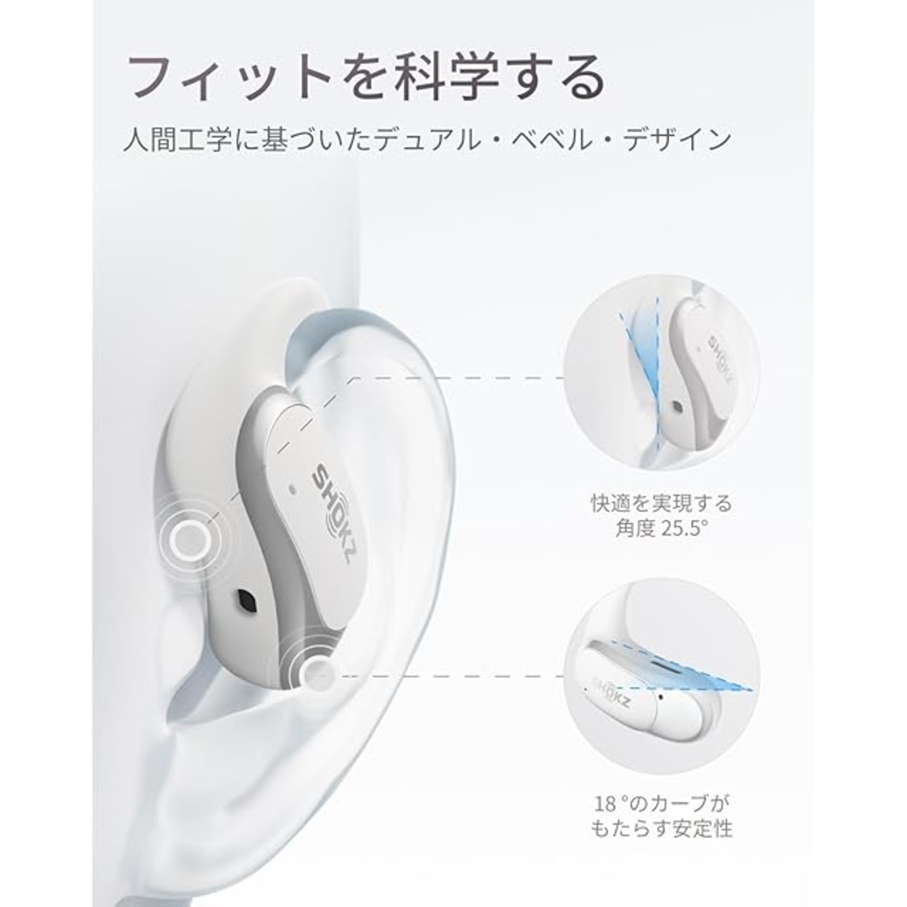 商品名:Shokz (ショックス) OpenFit Air オープンイヤーヘッドホン 完全ワイヤレスイヤホン bluetooth5.2 耳を塞がない 自動ペアリング マイク付きイヤフォン 充電ケース付き 左右分離型 8.7g軽量 ランニング・スポーツイヤホン IP54防水性能 急速充電 ハンズフリー通話 2024年新登場 ホワイト