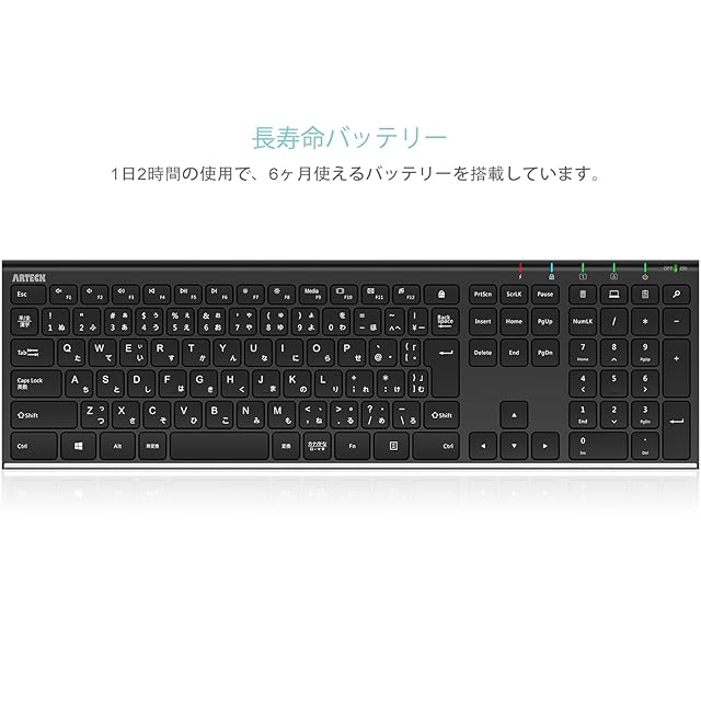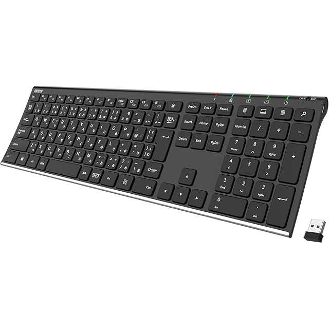 商品名:Arteck 2.4G ワイヤレスキーボード日本語配列 無線ステンレススチール 軽量 フルサイズキーボード テンキー付き コンピューター、デスクトップ、PC、ラップトップ、Surface、スマートテレビ、Windows10/8/7、Vista、XPとの交換性あり 充電式電池内蔵