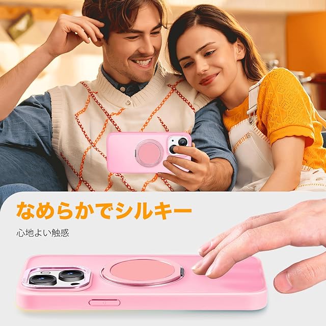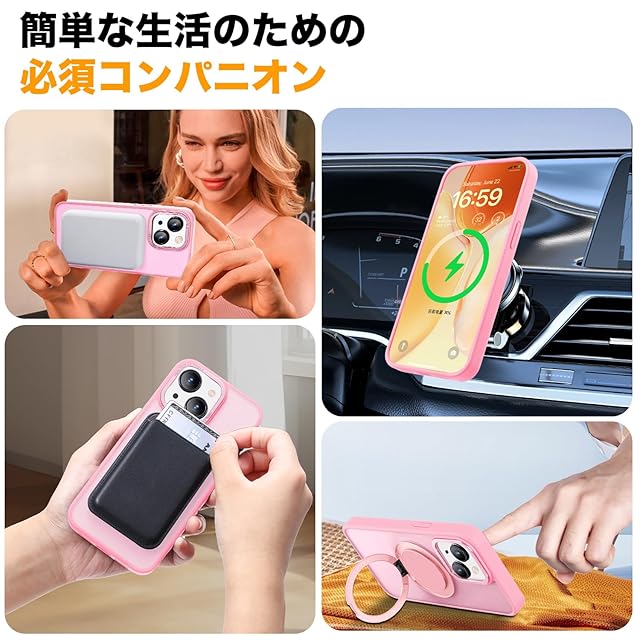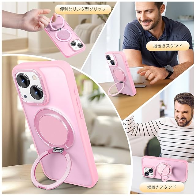 【Magsafe対応・スタンド付き】Mcoifull iPhone14 ケース iPhone13 ケース マグネット搭載 ワイヤレス充電 耐衝撃 マット感 半透明 指紋防止 アジャスタブルスタンド アイフォン14 ケース アイフォン13 ケース ピンク | TREND DESIGN 家電専門店