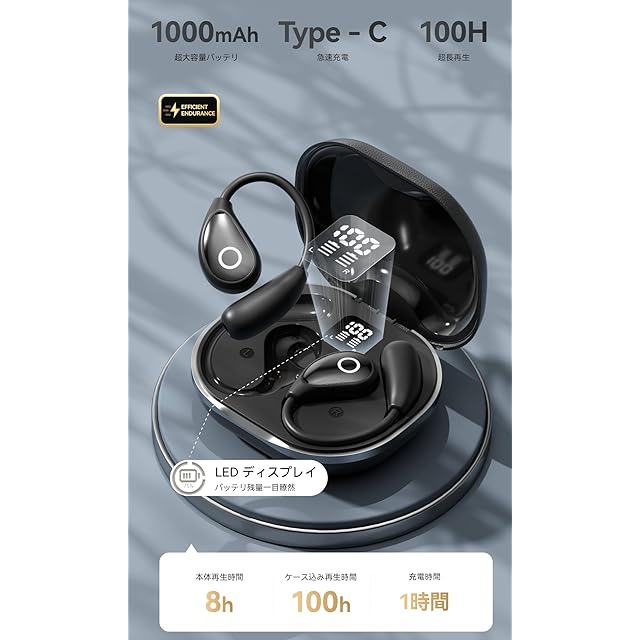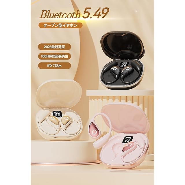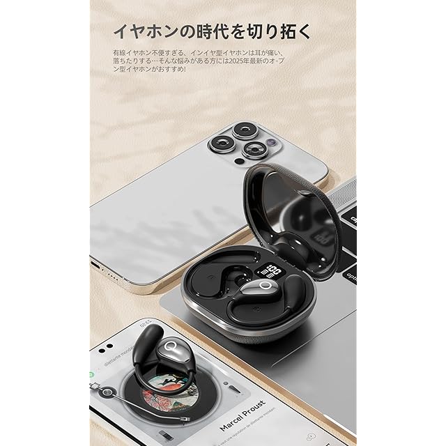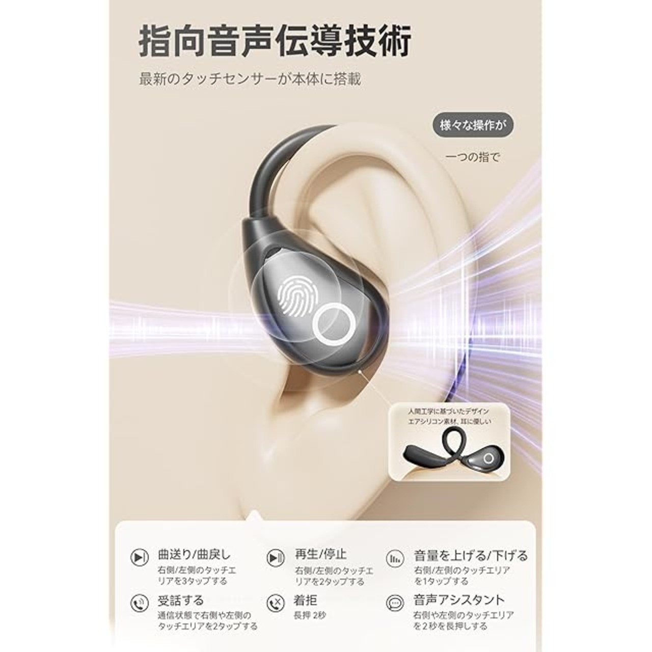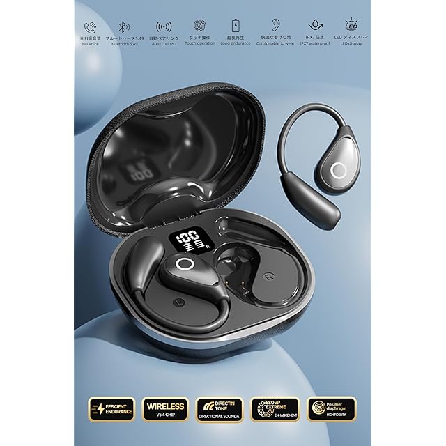 商品名:イヤホン bluetooth ワイヤレスイヤホン【2025年最先端 オープンイヤーヘッドホン】業界トップ Hi-Fi音質Bluetooth5.49 瞬時接続 ブルートゥースイヤホン 最大100時間再生 骨伝導イヤホンの革新 空気伝導 耳掛け式 耳を塞がない マイク付き 音漏れ抑制 超軽量 LED ディスプレイ残量表示 IPX7防水 通勤/通学/スポーツ/ゲーム/WEB会議(ブラック)