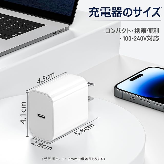 【MFi認証済み、USB C-Lighting ケーブル&耐久性抜群】弊社のusb 充電器には、Apple MFi認証を受けた1.8mのiphone 充電ケーブルが付属しており、iOSがアップグレードされても全く問題ありません。あらゆる充電ニーズに対応。耐久性に優れたTPE素材は、充電中の過熱を防ぎ、断線しにくく、15万回以上の厳しい曲げテスト・約50kg以上の重さを持ち上げるテストに合格し、一般的なlightningケーブルの12倍の耐久性を実現。