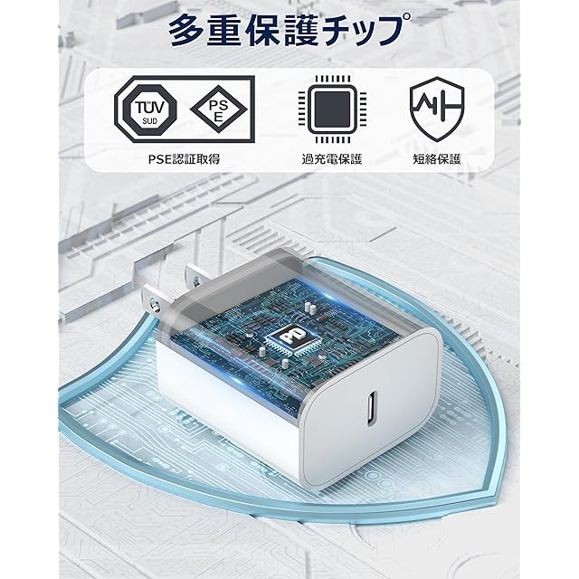 【PSE認証済で安心・安全】当社のiPhone充電器はPSE認証を取得し、厳格な品質管理を通じて、更に過熱、過充電、過放電および回路ショート防止など給電保護機能搭載しており、iPhone/iPadデバイスに自動的に必要な電流に適合し、迅速かつ安定してデバイスを充電できます。