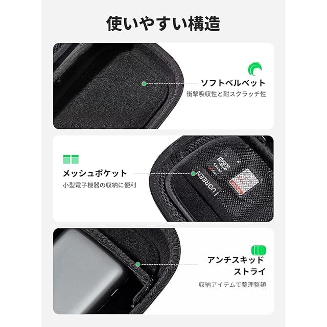 商品名:UGREEN ガジェットポーチ コンパクト PC周辺小物 収納ケース トラベルポーチ 充電器 ケーブル モバイルバッテリー USB ハブなどの収納ポーチ 保護ケース 小物入れポーチ 出張/旅行用 防水