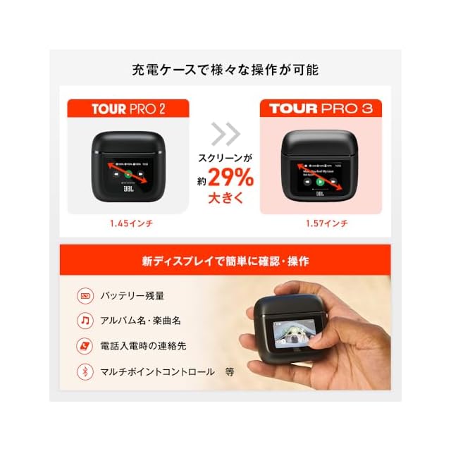 JBL TOUR PRO 3 ワイヤレスイヤホン bluetooth/ハイブリッドノイズキャンセリング/ハイレゾワイヤレスLDAC/デュアルドライバー/マルチポイント/防塵・防水/ワイヤレス充電対応/スマートタッチディスプレイ搭載/ブラック / JBLTOURPRO3BLK | TREND DESIGN 家電専門店