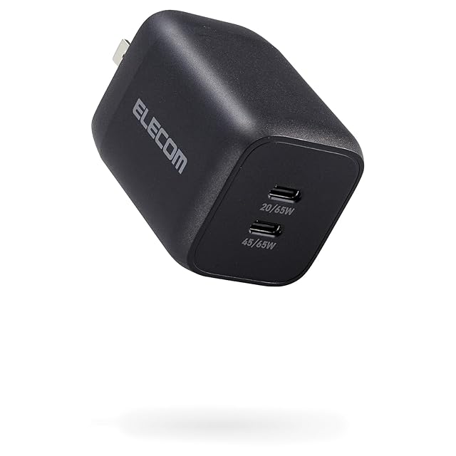 エレコム 充電器 Type-C 2ポート 65W USB PD対応 PPS対応 QC3.0対応 Magsafe3対応 折りたたみ式プラグ 【 iPhone16 15 iPad Macbook Air/Windows PC など対応】 ブラック EC-AC4365BK | TREND DESIGN 家電専門店