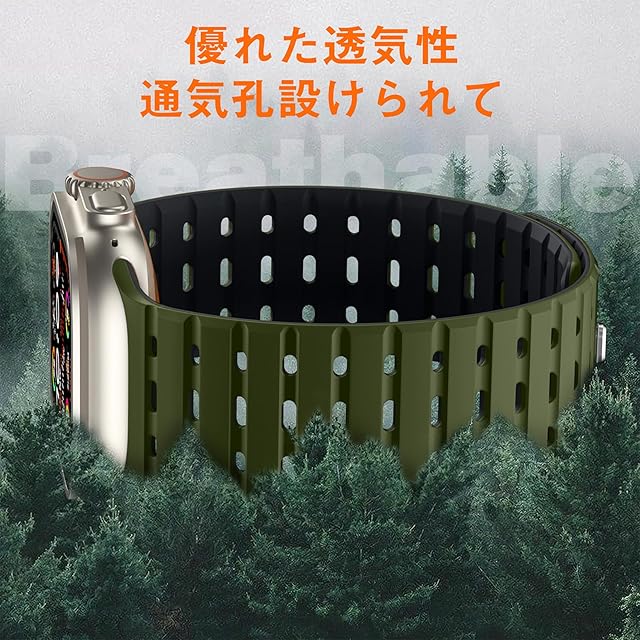 商品名:[Bandletic] アップルウォッチ用の バンド マグネット - 夏 蒸れない スポーツ 42mm 44mm 45mm 46mm 49mm 通気性 防汗 軽量 2色デザイン 交換バンド
