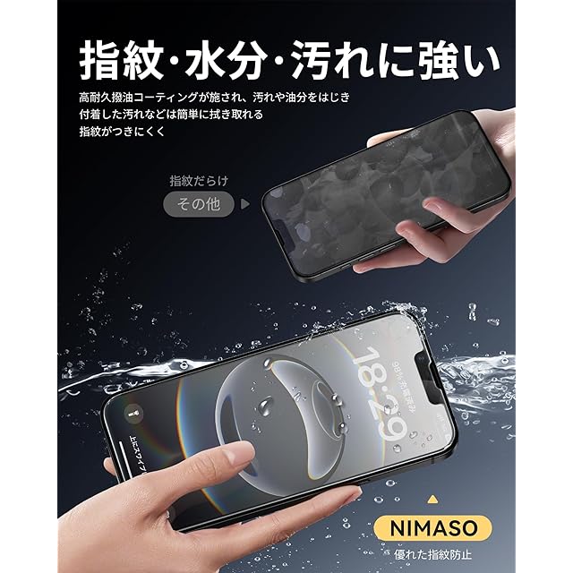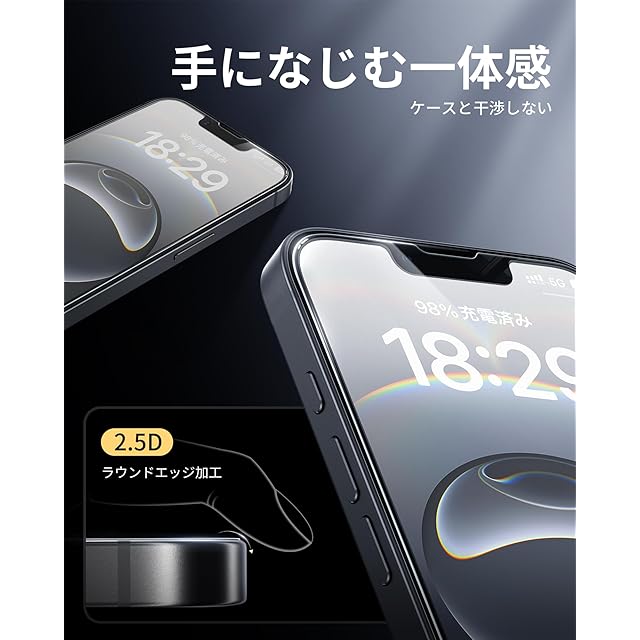 「指紋防止・なめらかなタッチ感度」本製品は撥水撥油のAF(Anti-Fingerprint)コーディング加工とスムースタッチ加工により、指紋や汚れがつきにくく、油分や水分が多く含む汚れや指紋がついても、拭き取るだけで綺麗になります。また、使用時の手触りも滑らかで、動画視聴や仕事中の作業、ゲームなどの邪魔になりません。常に美しいアイフォン 16e/14/13pro/13の画面をお楽しみいただけます。