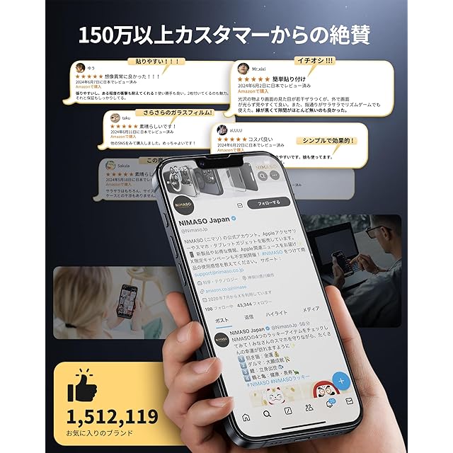 「2ステップ貼り付け・自動除塵」NIMASO最新型の自動除塵ガイド枠が登場!!!被せる、引っ張る、たった2ステップで初心者でも簡単に貼り付けができます。フィルムも自然と吸着する構造になっているため、静電気を利用してスクリーン上のホコリが引き出せ、気泡が入りにくく、完璧な貼り付けが可能、貼付け時の失敗が大幅に軽減できます。