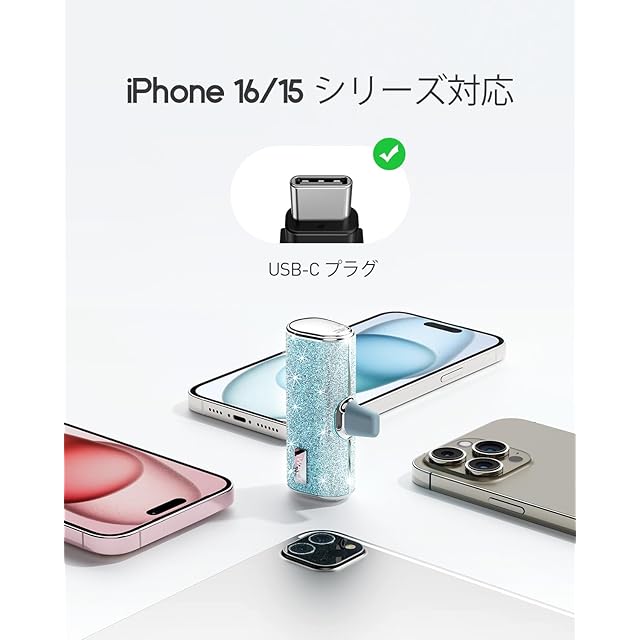 商品名:iWALK モバイルバッテリー 超小型 軽量 きらめくかわいいモバイル充電器 USB Type-C 直接充電 コネクター内蔵 コードレス 4500mAh コンパクト おしゃれ iPhone15/16シリーズ iPad AirPods Android対応 ギフト プレゼントとしてもぴったり PSE認証済 ライトブルー