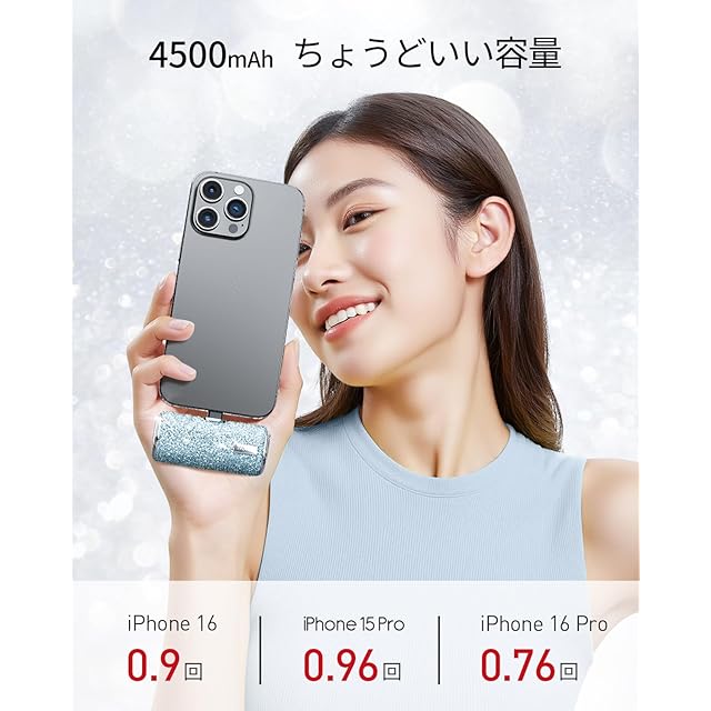 【ちょうどいい容量】4500mAh容量の小型バイルバッテリーはiPhone 16を90%まで充電できます。またGoogle Pixel 6、OnePlus 9、9 proなど60%に充電できます。ほとんどのデバイスも約1回充電が可能です。