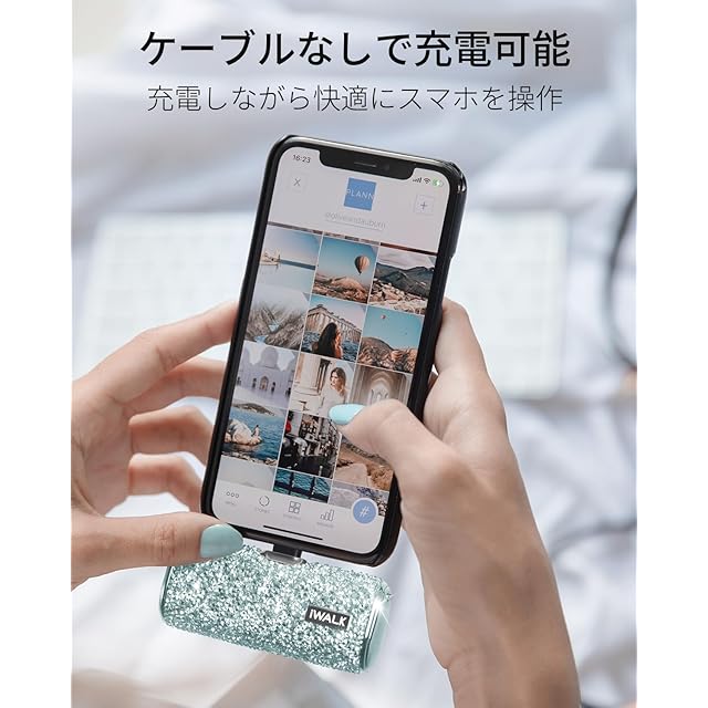 【ケーブル不要で持ち運び楽々】モバイルバッテリーは超コンパクトサイズなので、ポケットや財布にも入れやすく、持ち運びも楽々です。ケーブルを使わずに直接差し込むことで充電しながらスマホを使えるのでとても便利です。