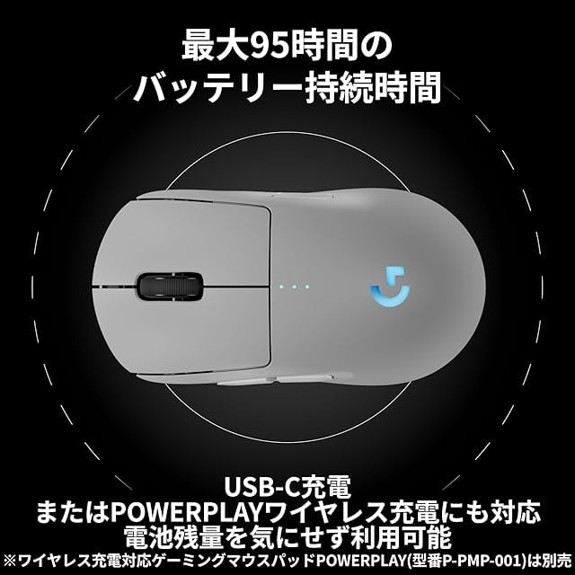 改善された電力効率/95時間の連続使用と省エネ性能を実現/プレイしながらのワイヤレス充電が可能な「POWERPLAYワイヤレス充電システム」にも対応、電池残量を気にせず利用できます ※POWERPLAY(G-PMP-001)は別売です