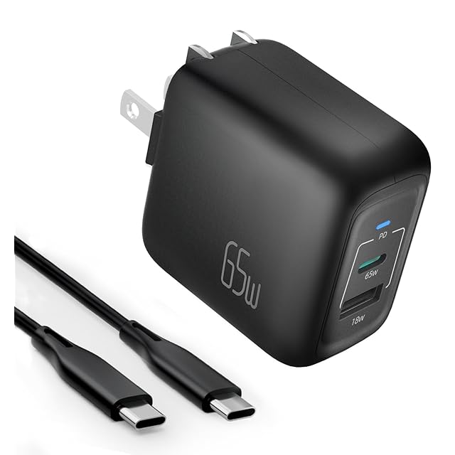 SUKEY PD 充電器 65W タイプC 急速充電器 折り畳み式 2ポート(USB-C*1とUSB-A*1) GaNII窒化ガリウム Type-C 充電器 PD3.0 PPS規格対応 MacBook iPad Pro iPhone Galaxy Android各種 その他USB-C機器対応 PSE技術基準適合 ブラック