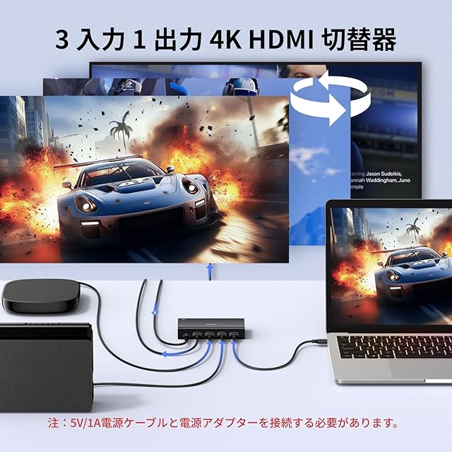 【幅広い互換性とパッケージ内容】: このHDMI切り替え機は、PS5/3/4/4 pro、Blu-rayプレーヤー、Fire stick、Xbox 360、Xboxシリーズx、Switch、Apple TV、DVDプレーヤー、PC、ラップトップ、HDTV、プロジェクターなど、ほとんどのHDMIソースデバイスと互換性があります。パッケージリスト 1* 4K HDMI切替器、1*電源ケーブル、1*リモートコントローラー、1*ユーザーマニュアル