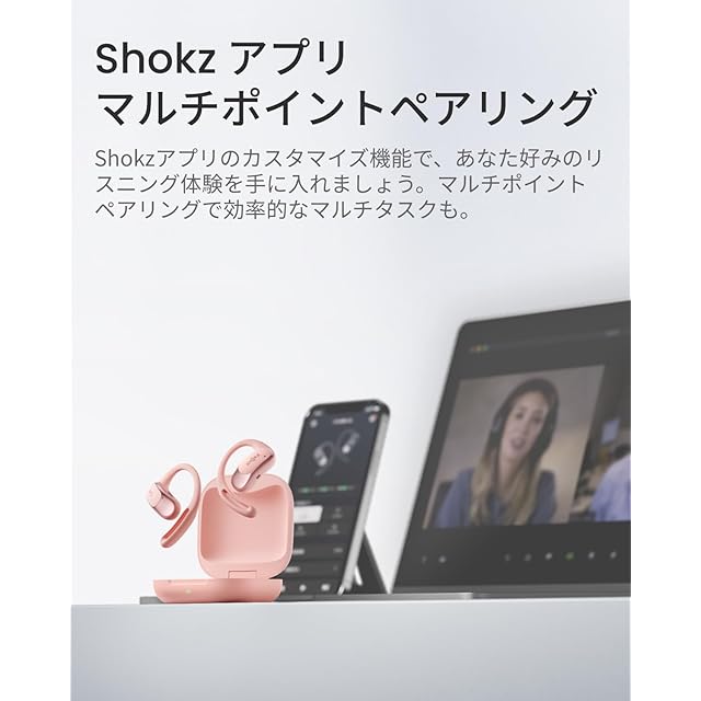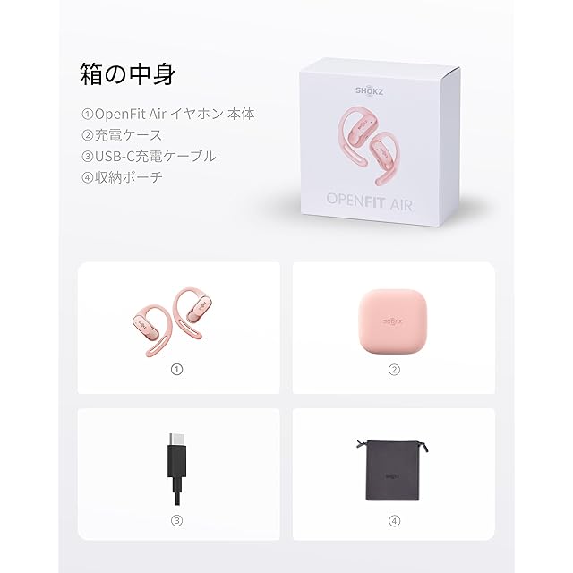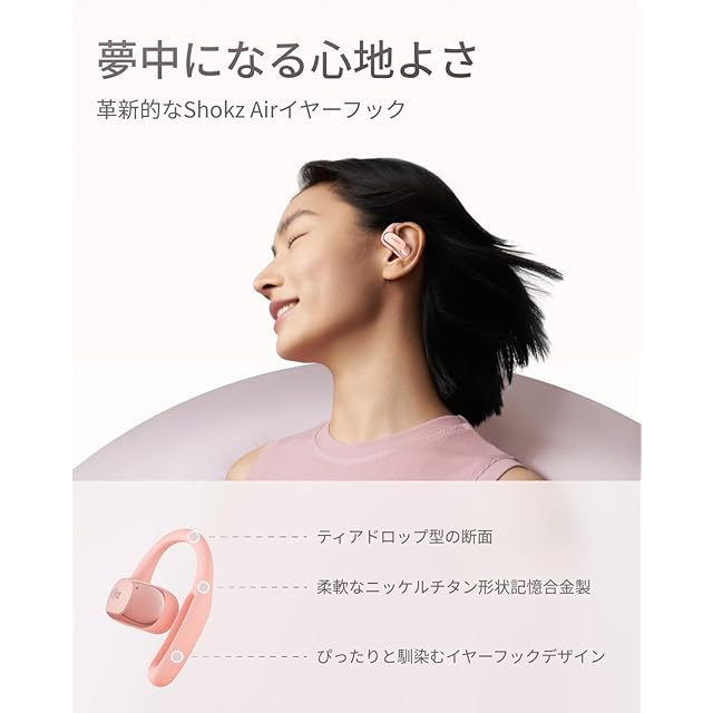 商品名:Shokz (ショックス) OpenFit Air オープンイヤーイヤホン 完全ワイヤレスイヤホン bluetooth5.2 耳を塞がない 自動ペアリング マイク付きイヤフォン 充電ケース付き 左右分離型 8.7g軽量 ランニング・スポーツイヤホン IP54防水性能 急速充電 ハンズフリー通話 2024年新登場 ピンク