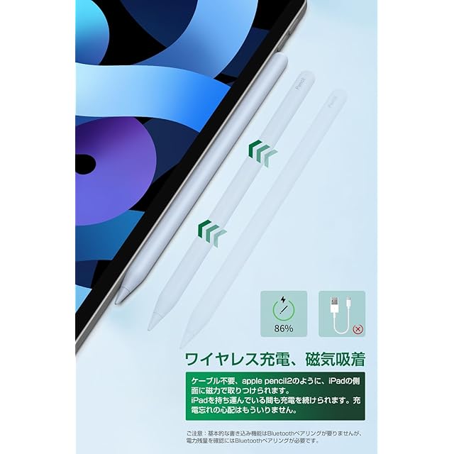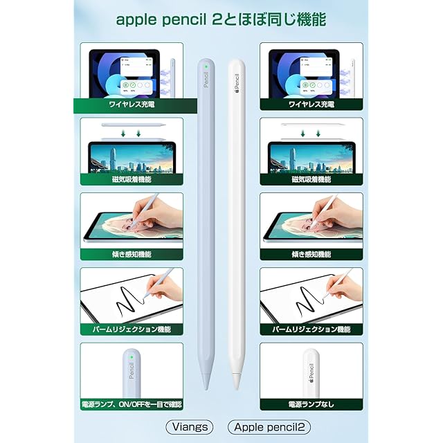【正規認証品 ワイヤレス充電】アップルペンシル Viangsタッチペン ipad ペン 磁気充電 apple pencil互換スタイラスペン 超高感度 極細 0遅延 ipad ペンシル 傾き感知/誤作動防止/磁気吸着充電対応 タッチペン タブレット用 iPad air4/5/iPad Pro11/iPad Pro12.9/iPad mini6対応