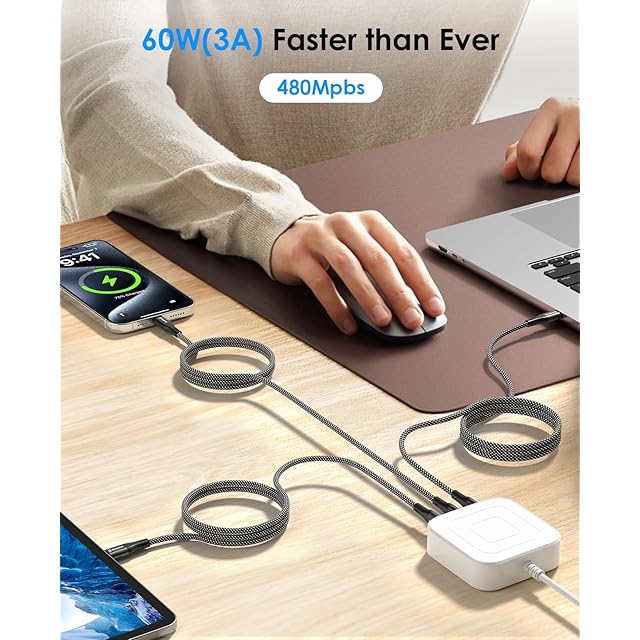 最大PD60W/3A急速充電、480Mbpsデータ転送:USBPD対応に対応したCタイプケーブルで、PDに対応したスマホやタブレットなら素早く充電することができます。480Mbpsの高速データ転送は音楽、映画、写真、HD動画をわずか40秒以内に転送できます。