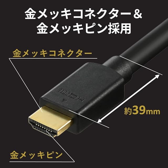 【伝送速度】48Gbps【コネクター形状】HDMIプラグ(タイプA-19ピン)-HDMIプラグ(タイプA-19ピン) 【外形寸法】ケーブルの太さ:約6.3mm