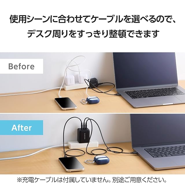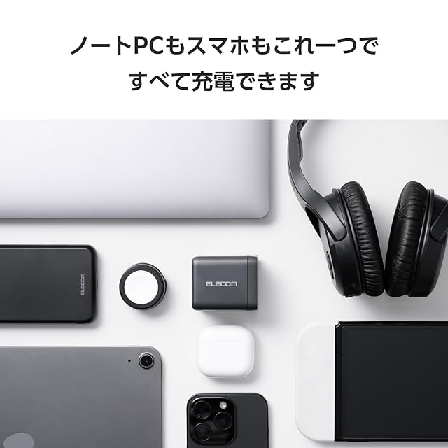 2ポート同時接続時は20W~70W、3ポート同時接続時は12W~70Wでの出力が可能。ノートパソコンやスマートフォン、タブレット、ワイヤレスイヤホン、電子タバコなど、幅広いデバイスを同時に充電できます。