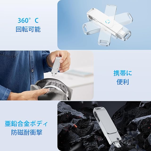 商品名:【4TB 大容量】USBメモリ 4TB 大容量 USB&Type-C 両用 メモリー フラッシュメモリ 外付けメモリ usb 4tb 360度回転 スマホ・Mac・Windows PC・アイPad・アイフォン15など対応 耐久性あり 合金製 防水 防塵 高速データ タイプC 小型
