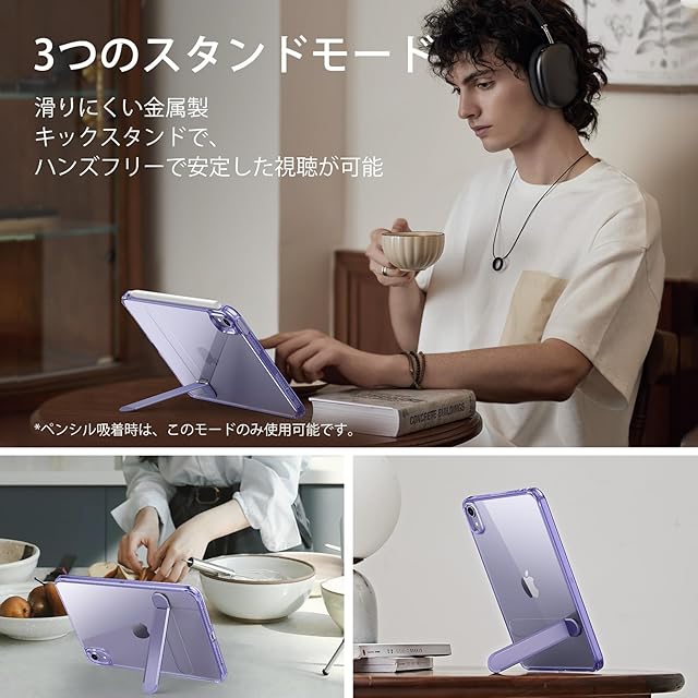 ESR iPad mini7 ケース (A17 Pro、2024) iPad mini 第7/6世代 専用カバー (2024/2021) 3スタンドモード スリムで軽量落下防止 Pencil Pro/USB-C対応 Boostキックスタンドケース パープルクリア | TREND DESIGN 家電専門店