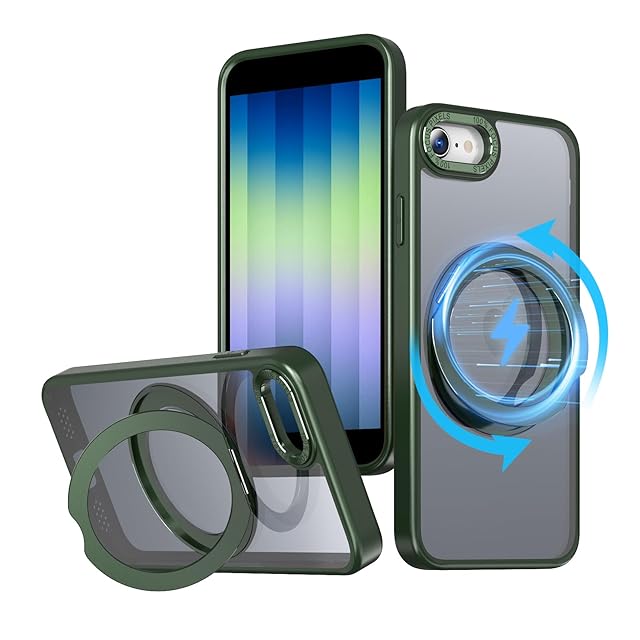 KWATUNG ケース iphone se3 用ケース iphone se2 用ケース magsafe対応 360°回転スタンド 縦横両対応 リング マグネット搭載 アイフォン SE3 SE2 8 7用ケース 防指紋 米軍MIL規格 耐衝撃 iPhone SE 第3世代/iPhone SE 第2世代/iPhone8/iPhone7 用ケース 4.7インチ 半透明 マット感 ダークグリーン | TREND DESIGN 家電専門店