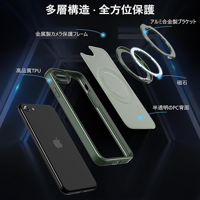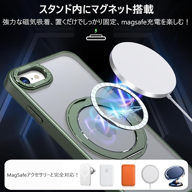 【Magsafe対応·多機能】iPhone SE3 / iPhone SE2 / iPhone 8 / iPhone 7 用 ケース(4.7インチ)。ワイヤレス充電やモバイルバッテリーなど全てのMagSafe用アクセサリーにもばっちり対応しています。こちらのアイホンSE3用ケースを使用すれば、充電ケーブルを抜き差しする必要がなくなり、利便性を体感していただけます。【ご注意:この製品はすべての Magsafe デバイスと互換性がありますが、Qi ワイヤレス充電には適していないため、購入する前にこの点を考慮してください】
