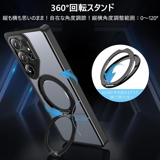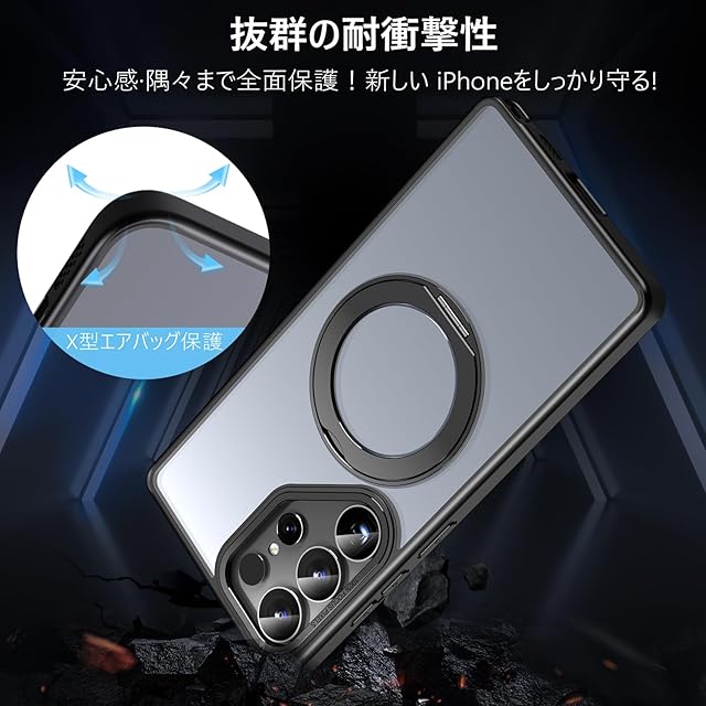 商品名:KWATUNG Galaxy S25 Ultra 用 ケース magsafe対応 ワイヤレス充電 耐衝撃 ギャラクシーS25 Ultra 用ケース 360°回転スタンド 縦横両対応 マグネット搭載 SC-52F SCG32 用ケース 防指紋 米軍MIL規格 ギャラクシー S25 ウルトラ 用スマホケース 半透明 マット感 ブラック