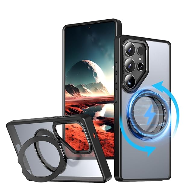 KWATUNG Galaxy S25 Ultra 用 ケース magsafe対応 ワイヤレス充電 耐衝撃 ギャラクシーS25 Ultra 用ケース 360°回転スタンド 縦横両対応 マグネット搭載 SC-52F SCG32 用ケース 防指紋 米軍MIL規格 ギャラクシー S25 ウルトラ 用スマホケース 半透明 マット感 ブラック | TREND DESIGN 家電専門店