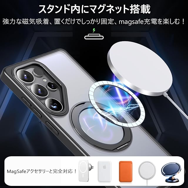 【Magsafe対応·多機能】Galaxy S25 Ultra(SC-52F/SCG32)専用 。ワイヤレス充電やモバイルバッテリーなど全てのMagSafe用アクセサリーにもばっちり対応しています。こちらのGalaxy S25 Ultra用ケースを使用すれば、充電ケーブルを抜き差しする必要がなくなり、利便性を体感していただけます。【ご注意:この製品はすべての Magsafe デバイスと互換性がありますが、Qi ワイヤレス充電には適していないため、購入する前にこの点を考慮してください】