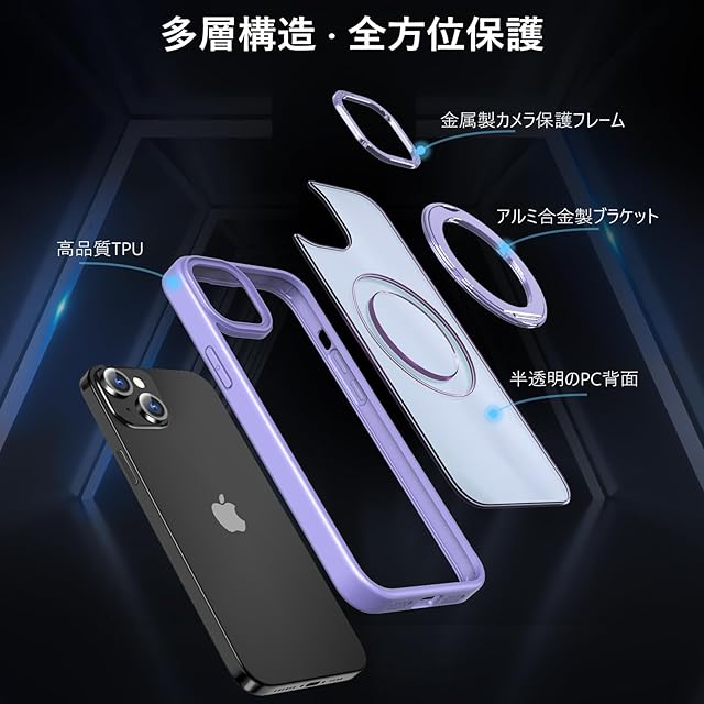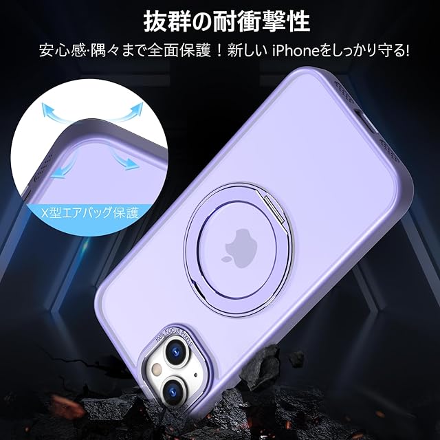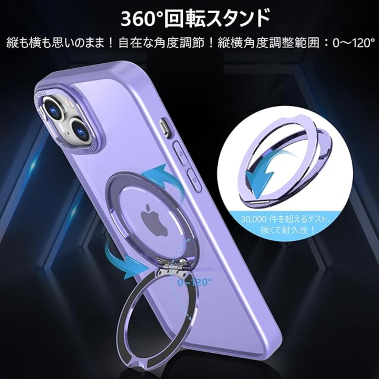 商品名:KWATUNG 互換品 ケース iphone 15 plus 用 ケース magsafe対応 ワイヤレス充電 iphone15plus 用ケース スマホ 落下防止 いphone15plus 用ケース 360°回転スタンド 縦横両対応 アイホン15プラス用ケース マグネット搭載 アイホン15plus用ケース 防指紋 米軍MIL規格 6.7インチ 半透明 マット感 ライトパープル