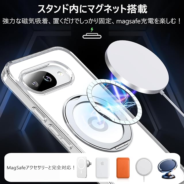 【Magsafe対応·多機能】Google Pixel 9A 専用 / 6.3インチ 。ワイヤレス充電やモバイルバッテリーなど全てのMagSafe用アクセサリーにもばっちり対応しています。こちらのPixel 9a用ケースを使用すれば、充電ケーブルを抜き差しする必要がなくなり、利便性を体感していただけます。【ご注意:この製品はすべての Magsafe デバイスと互換性がありますが、Qi ワイヤレス充電には適していないため、購入する前にこの点を考慮してください】
