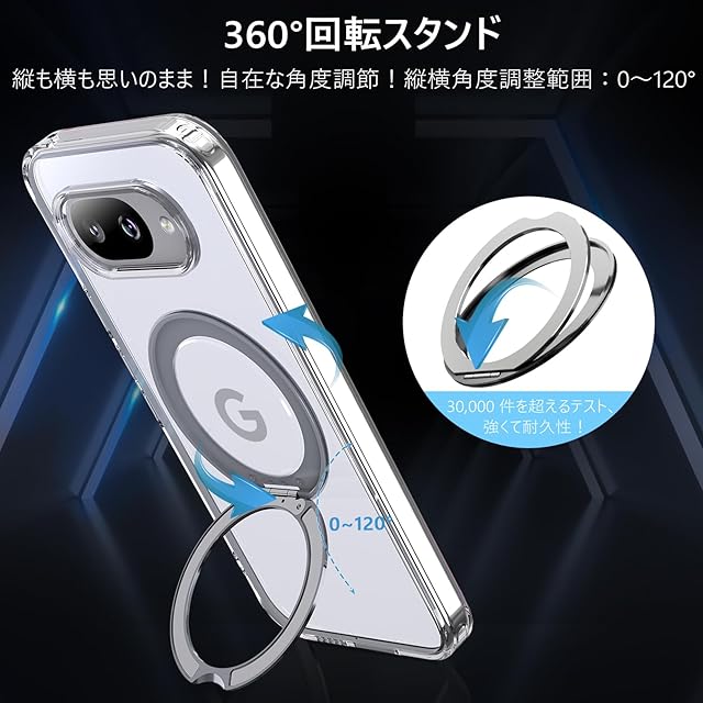 KWATUNG ケース Google Pixel 9a 用 ケース magsafe対応 ワイヤレス充電 グーグルピクセル 9a用スマホケース 耐衝撃 360°回転スタンド 縦横両対応 マグセーフ リング マグネット搭載 防指紋 米軍MIL規格 Pixel 9a カバー 6.3インチ 透明 クリア | TREND DESIGN 家電専門店