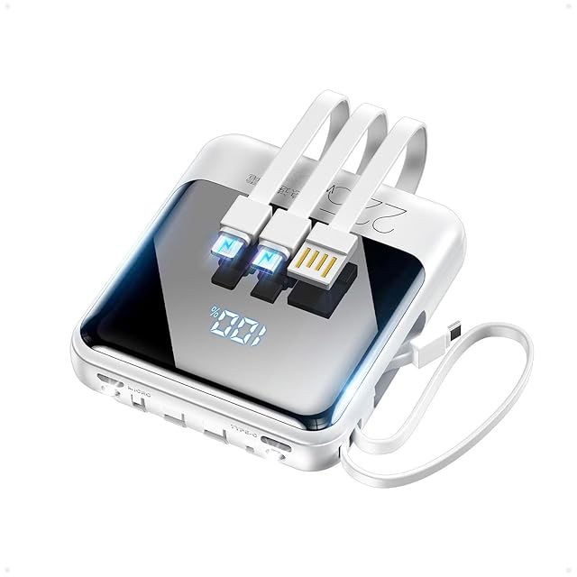 モバイルバッテリー 大容量 22800mAh 【210g超軽量 4本ケーブル内蔵】 小型 PD20W 急速充電 SCP22.5W対応 5台同時充電 携帯バッテリー LCD残量表示 スマホ 充電器 ストラップ付き 持ち運び便利 LEDライト付き コンパクト 携帯充電器 パワーバンク 旅行/出張/アウトドア/停電/防災緊急用 iOS/Android各種他対応 機内持ち込み可能 (ホワイト)