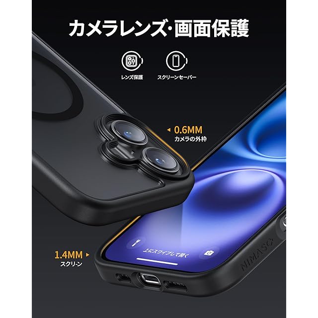 NIMASO iPhone 16 用 ケース MagSafe対応 スマホケース マグセーフ対応 カバー 滑り止め マット仕上げ いPhone16対応 全面保護 耐衝撃 米軍MIL規格取得 ワイヤレス充電 ストラップホール付き 携帯スマホケース アイフォン16対応 (6.1インチ) ブラック (黒羽シリーズ)NSC24G1448 | TREND DESIGN 家電専門店