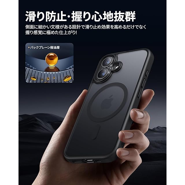 NIMASO iPhone 16 用 ケース MagSafe対応 スマホケース マグセーフ対応 カバー 滑り止め マット仕上げ いPhone16対応 全面保護 耐衝撃 米軍MIL規格取得 ワイヤレス充電 ストラップホール付き 携帯スマホケース アイフォン16対応 (6.1インチ) ブラック (黒羽シリーズ)NSC24G1448