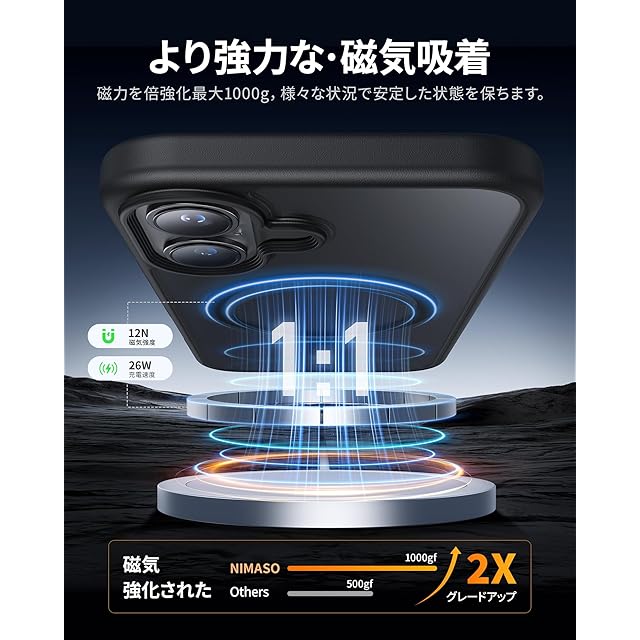 商品名:NIMASO iPhone 16 用 ケース MagSafe対応 スマホケース マグセーフ対応 カバー 滑り止め マット仕上げ いPhone16対応 全面保護 耐衝撃 米軍MIL規格取得 ワイヤレス充電 ストラップホール付き 携帯スマホケース アイフォン16対応 (6.1インチ) ブラック (黒羽シリーズ)NSC24G1448