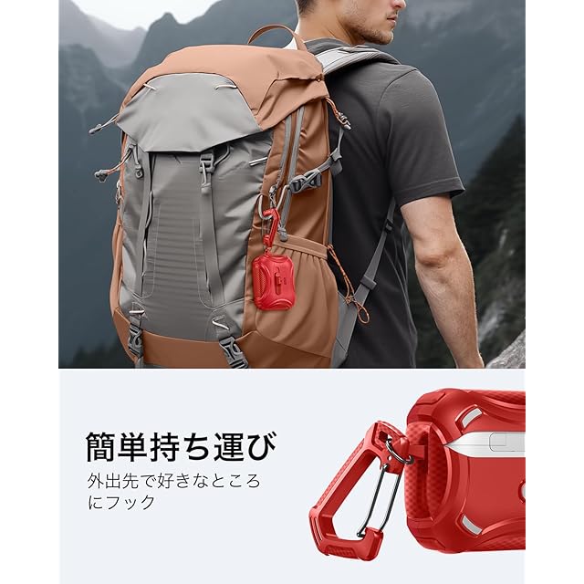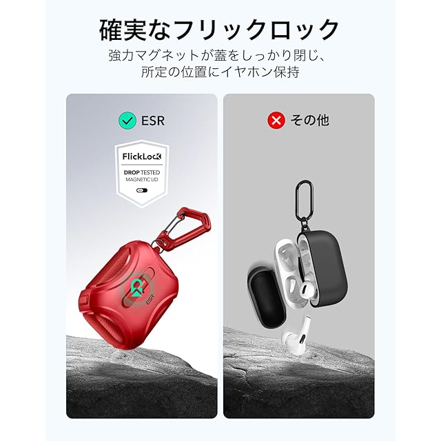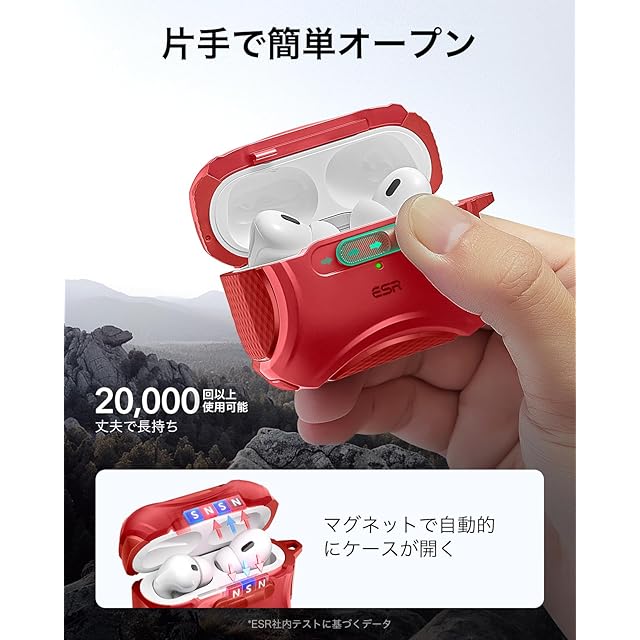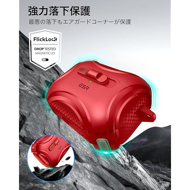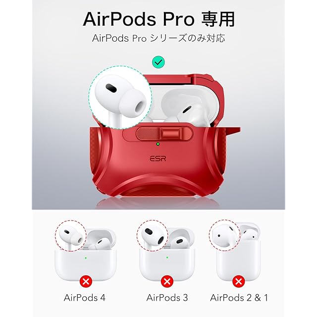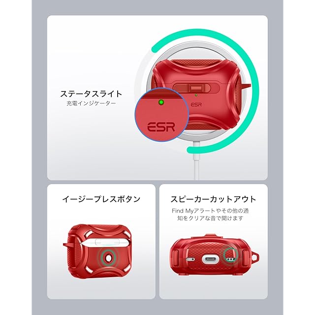 ESR AirPods Proケース(2023/2022/2019、第2/1世代)専用、AirPods Pro第2世代(USB-C/Lightningケーブル)対応、MagSafe、落下防止ロック、イージーオープン、Cyberシリーズ、レッド | TREND DESIGN 家電専門店