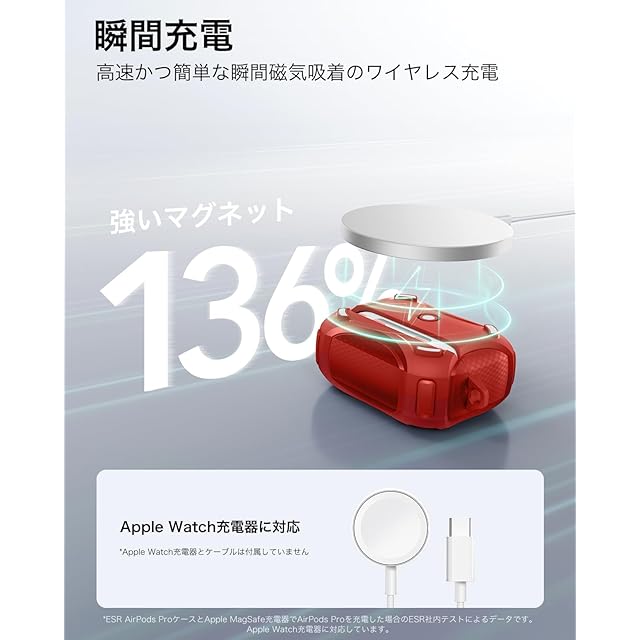 商品名:ESR AirPods Proケース(2023/2022/2019、第2/1世代)専用、AirPods Pro第2世代(USB-C/Lightningケーブル)対応、MagSafe、落下防止ロック、イージーオープン、Cyberシリーズ、レッド